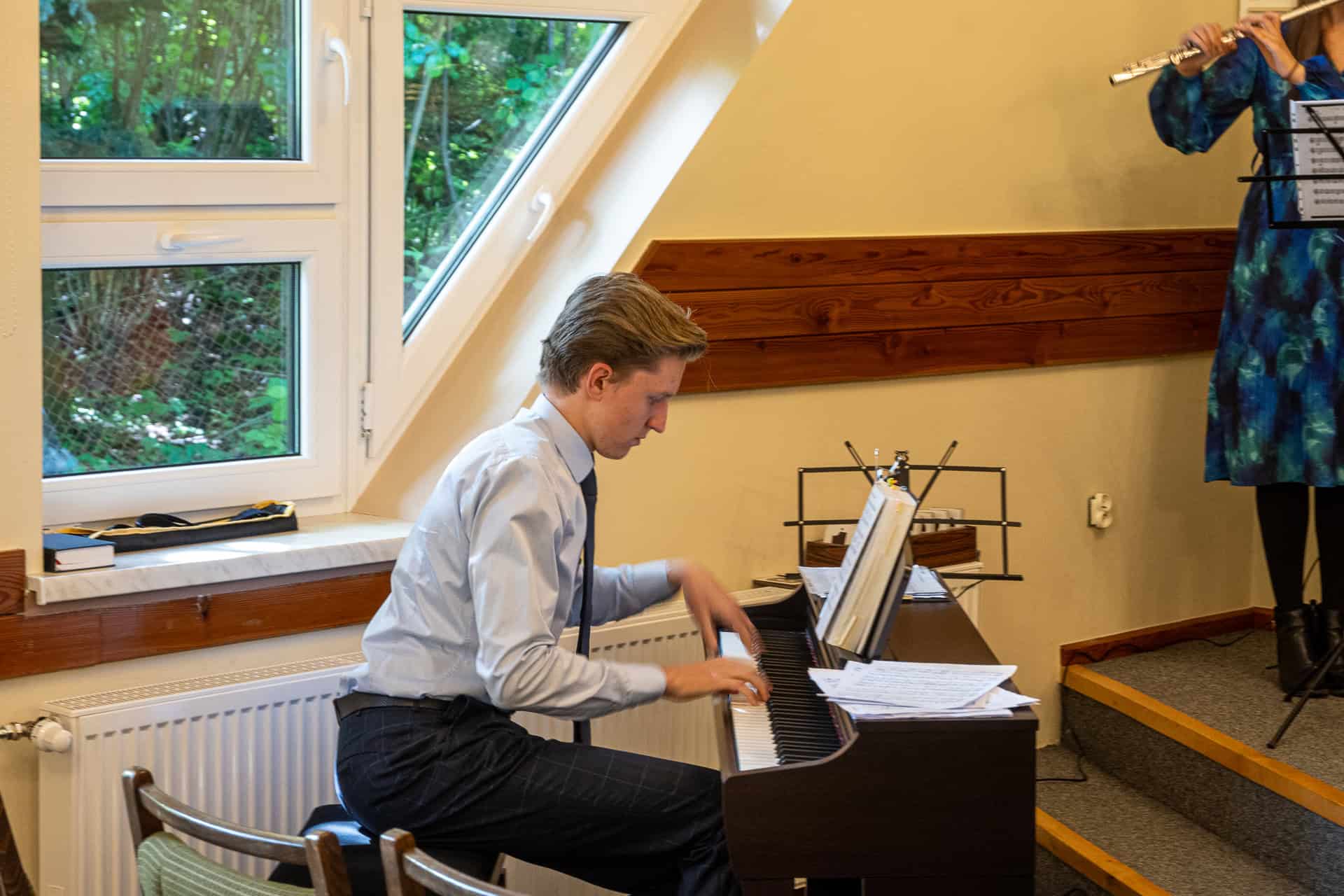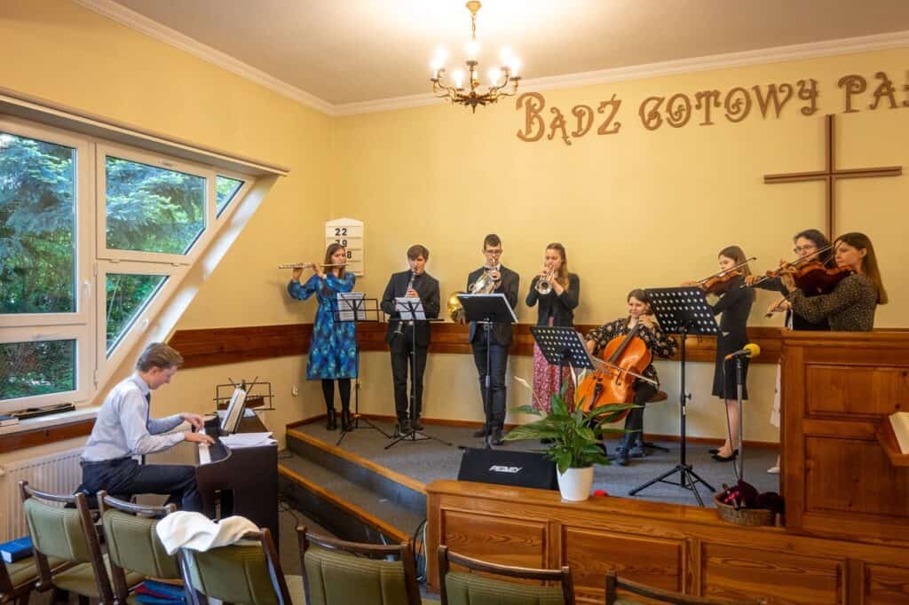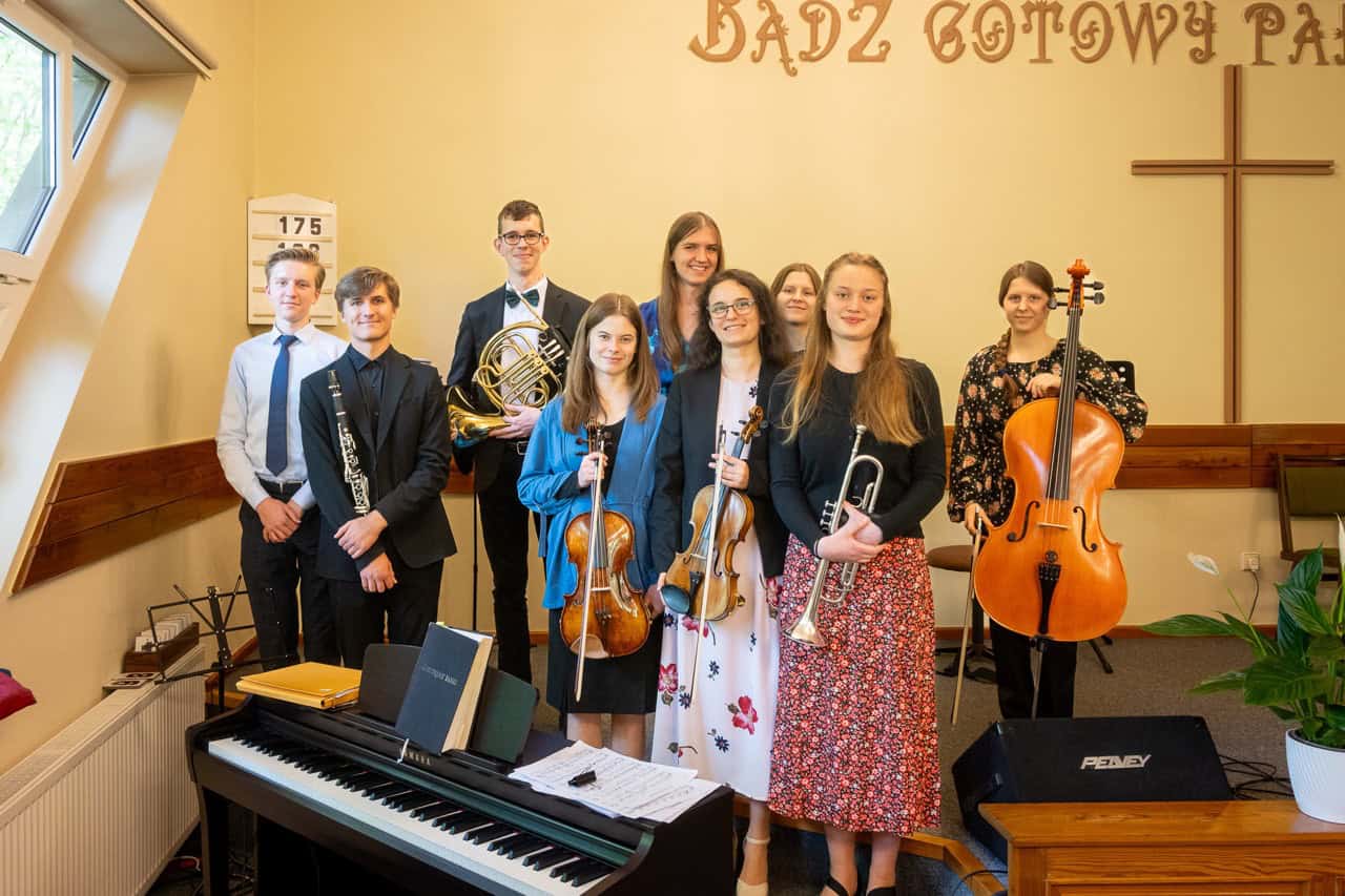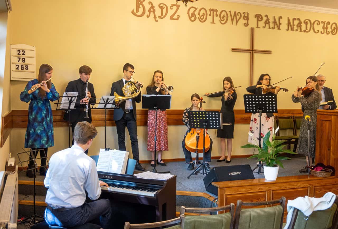 24 dzień maja okazał się szczególnie błogosławioną w naszym zborze sobotą, ponieważ w tym dniu zbiegło się kilka szczególnych wydarzeń. Po pierwsze, odwiedził nas zespół młodych ludzi, którzy postanowili spędzić weekend w naszym zborze, aby wspólnie razem ćwiczyć swój repertuar, a w sobotę usłużyli nam piękną oprawą muzyczną do nabożeństwa. Anabasis, bo tak nazwali swój zespół, tworzy 9 młodych instrumentalistów grających na: pianinie, flecie poprzecznym, klarnecie, waltorni, skrzypcach, altówce oraz wiolonczeli. Ich siłą jest wykształcenie muzyczne, zapał i chęć wspólnego grania, mimo że na co dzień dzielą ich setki kilometrów. Jednak znajdują rozwiązania i regularnie spotykają się w zborach, do których uczęszczają, i oprócz prób również służą swoimi talentami podczas wspólnych pieśni oraz wykonując przygotowywane utwory. Nazwa zespołu to figura muzyczno-retoryczna, która była szeroko stosowana zwłaszcza w muzyce baroku. Jej zastosowanie służy wyrażeniu treści podniosłych, radosnych, oznaczających wzrost, wywyższenie. To muzyczny odpowiednik „wzrostu”, czy „pochodu w górę”, który pojawiał się w kontekście tekstów mówiących o zmartwychwstaniu Jezusa, wniebowstąpieniu, niebie i boskości. I właśnie tego typu muzykę tworzą ci młodzi ludzie. Wykonują oni utwory pełne wzniosłości, spokoju i nabożeństwa z pełnym zaangażowaniem i przekonaniem, że to co tworzą jest wykonywane na chwałę Panu. To było dobre doświadczenie móc śpiewać przy akompaniamencie zespołu, kiedy zarówno muzyka jak i treść niosła w górę przed Boży tron w niebie. Pozostaje więc życzyć zespołowi Bożych błogosławieństw i żeby to On wspierał ich służbę, a my byśmy mogli jeszcze nie raz słyszeć w ich muzyce niebo.