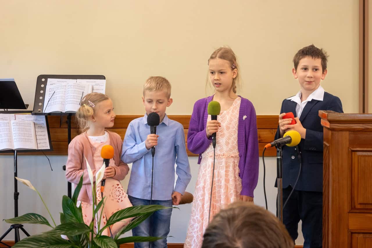 Co roku w maju na okoliczność Dnia Matki i w dalszej kolejności Dnia Dziecka staramy się zaakcentować w naszym zborze ten czas, który przypomina o znaczeniu rodziny, tym bardziej, że silna rodzina to fundament silnego Kościoła i społeczeństwa. Nie inaczej było i w tym roku, bo na sobotę 24 maja najmłodsi przygotowali kilka wierszy, w których wyrażali wdzięczność dla rodziców za ich miłość i zaangażowanie, a także zaśpiewali pieśń nr 509, która jest prośbą o Boże błogosławieństwo dla Mamy. Tu należy zauważyć, że nasi najmłodsi nie obawiają się solówek, a i we wspólnych partiach poradzili sobie świetnie.