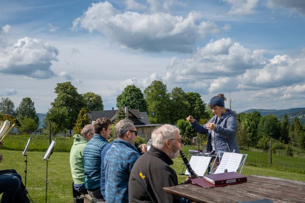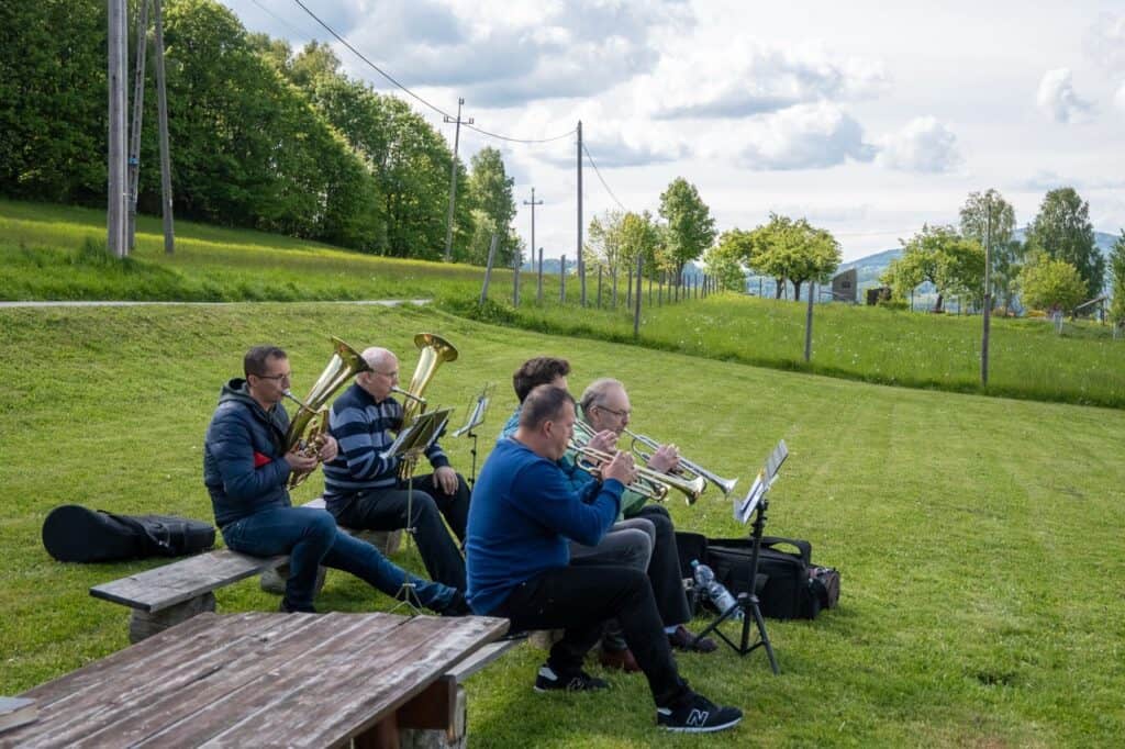 Natomiast w godzinach popołudniowych tej soboty spotkaliśmy się na Kozińcach, gdzie mogliśmy wspólnie zaśpiewać kilka pieśni w towarzystwie nieco okrojonej orkiestry Echo Adwentu, wysłuchać krótkiej refleksji Daniela Skwarka, który przypomniał na podstawie relacji nieżyjącego już Pawła Cieślara, jak rozpoczęła się II Wojna Światowa w Wiśle i ten wieczór, kiedy cała rodzina zebrała się, by wołać do Boga o Jego prowadzenie i ochronę w czasie, kiedy ich życie w szczególny sposób każdego dnia było zagrożone. Celem tego spotkania było również to, żeby ze sobą być, móc porozmawiać i oczywiście zjeść coś smacznego, co się bez wątpienia udało. Nie bez znaczenia był także fakt, że pogoda nam dopisała, mimo, że w poprzedzających dniach raczej było zimno i mokro, a tego dnia świeciło słońce i temperatura była wystarczająca by spotkać się na „polu”.
